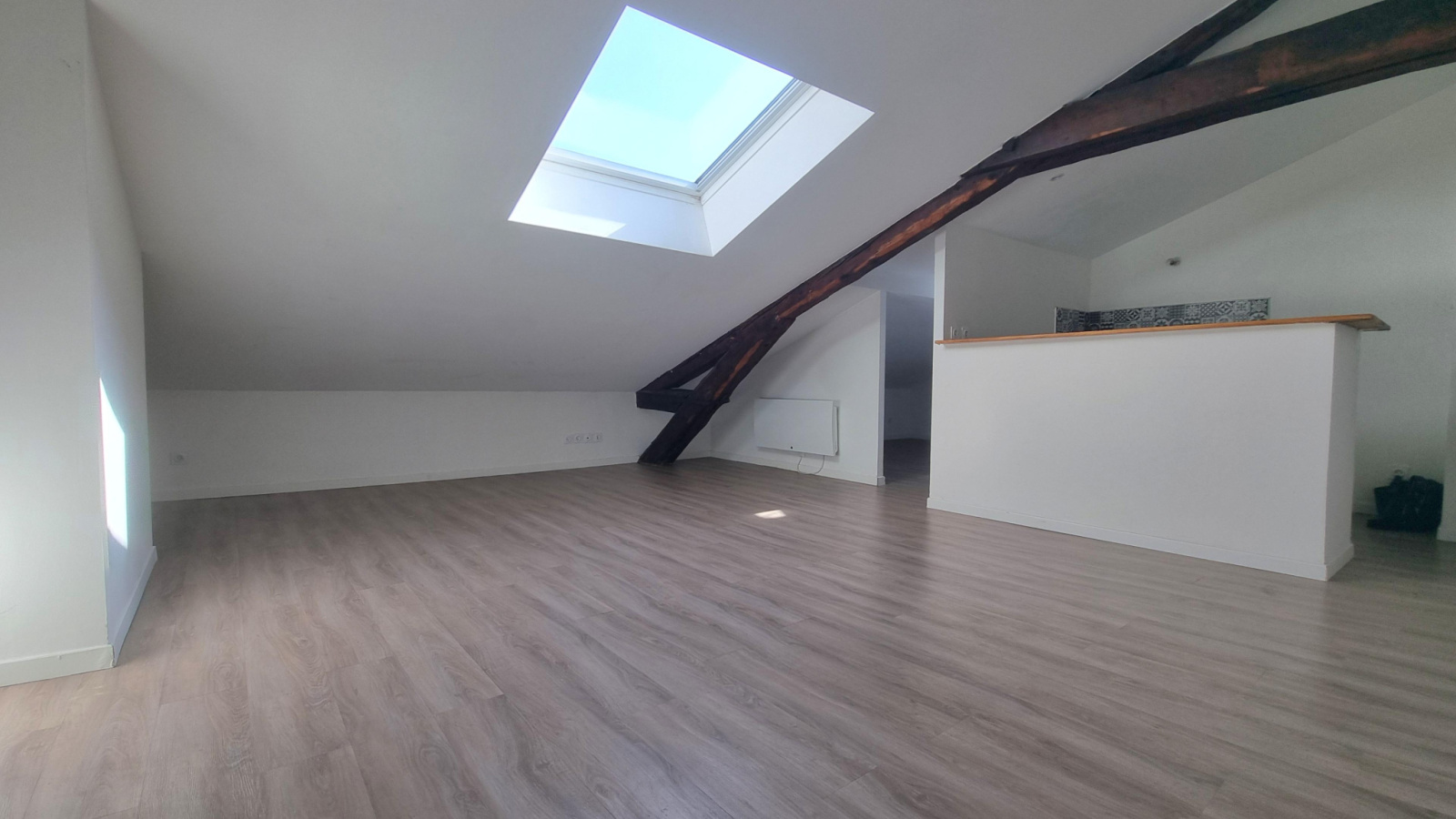 Il se compose d'un séjour avec espace cuisine ouvert, d'une chambre de 12m² et d'une seconde chambre enfant ou bureau de 7m², d'une salle de bains, toilettes séparées et une cave en sous-sol. Très bon état général, chauffage individuel électrique, charges d'environ 55€/mois.